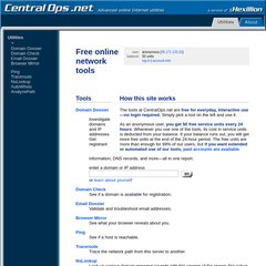 Centralops is ranked 3,818 in Australia. 'Free online network tools - traceroute, nslookup, dig, whois lookup, ping - IPv6.'